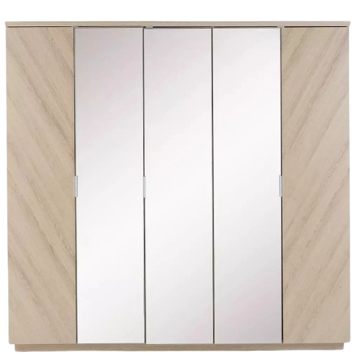 Light wood grain finish on a 5-door wardrobe